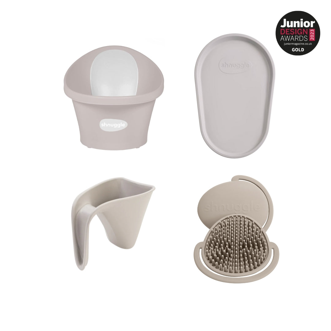 مجموعة حمام أطفال رمادية فاتحة + فرشاة استحمام